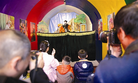 木偶戏历史悠久,是汉族传统艺术之一。“刘秋愣”团队是国家“非遗”木偶戏第四代传承人。近年,随着地坑院文化旅游的挖掘与开发,该团队把木偶戏艺术表演搬进地坑院内,为游客奉献了一场场精彩的视觉盛宴。 (记者 孙猛 摄)
