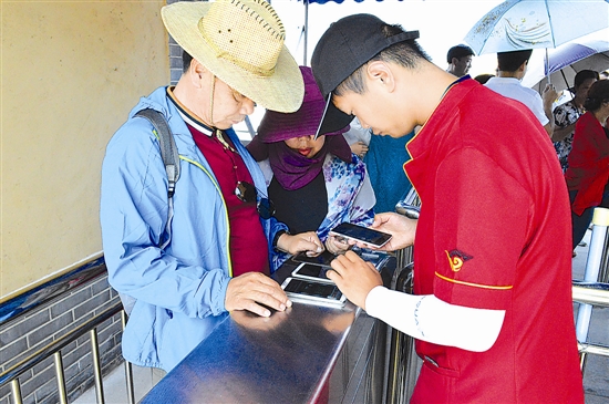 “您好,请问河南省惠民旅游卡会员已经预约,在这里检票吗?”6月10日,游客王先生拿着手机向陕州地坑院景区检票口工作人员春晓咨询,其手机屏幕上显示着一张二维码图片。“是的,您稍等,这就为您检票。”春晓边说边操作手机微信,点击“河南省惠民旅游”微信公众号,打开相关页面,点击“验证二维码”并扫描王先生提供的二维码,很快,“河南省惠民旅游”微信公众号后台显示,王先生提供的二维码通过验证,表明其预约成功,可以进入游览。“惠民旅游卡真是太方便了,只需电子预约,操作便捷,省去了不少排队买票的时间,而且性价比高!”王先生高兴地说。记者了解到,王先生来自济源市,与爱人均已退休,闲暇时间常外出旅游放松身心。5月底,王先生从《济源日报》上知晓河南省惠民旅游卡,便和爱人一起购买此卡。“很早之前就听说过三门峡的陕州地坑院,一直想来看看,正好这期的优惠景区是地坑院,而且临近的洛阳抱犊寨也在活动中,先来地坑院,再去抱犊寨,有山有水有人文,端午假期这么过很充实!”王先生说。