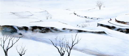 天空灰暗,大地阴晦,树枝一片光秃,天上雪花飞舞。农谚“小雪雪满天,来岁必丰年”。