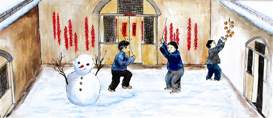 温度普遍降到零摄氏度以下,天寒地冻,整片大地被厚厚的白雪所覆盖。孩子们最喜欢溜冰、滚雪球等活动。