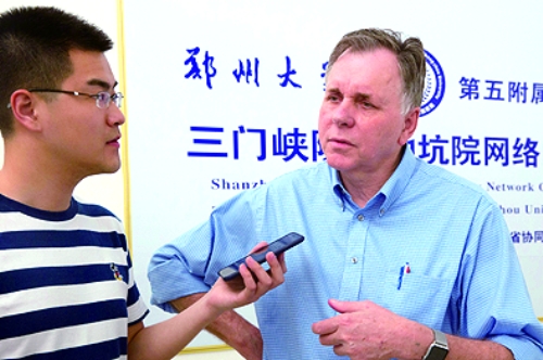 6月16日,马歇尔教授来到陕州地坑院,不仅自愿做“赤脚医生”,还联合郑大五附院为当地景区医院捐赠了“互联网医院系统”——只需要有一台能满足上网需求的电脑、一台专门传输检查单等数据的高拍仪和一个动态心电图检测仪,再连接上郑州大学互联网中心研发的这个互联网系统,就可以快速进行远程诊疗、传输远程检查单等服务。换句话说,今后,陕州地坑院的村民及景区游客,在陕州当地就可以直接享受省级专家的医疗指导。
