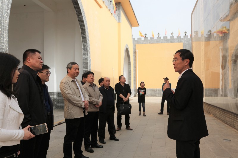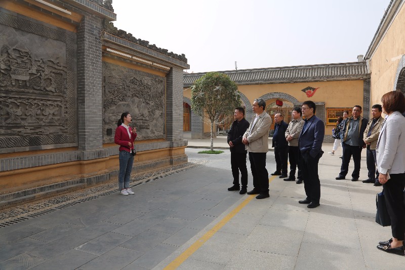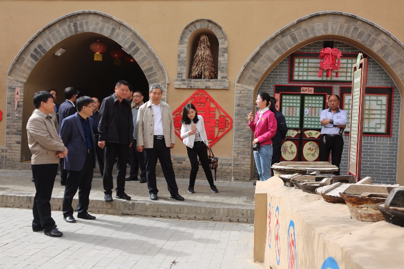 调研考察团一行首先在景区入口处,有着“地平线下古村落,民居史上活化石”题词的影壁墙前,景区总经理为各位详细介绍了地坑院的历史及背景、景区项目建设及运营情况。