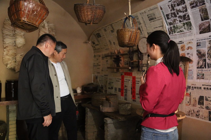 能够实时监测室外与窑洞内温度的黑科技“玉米温度计”惊艳了考察团一行,大家纷纷驻足观看者奇妙的温度计,更是对地坑院冬暖夏凉的特性羡慕不已。