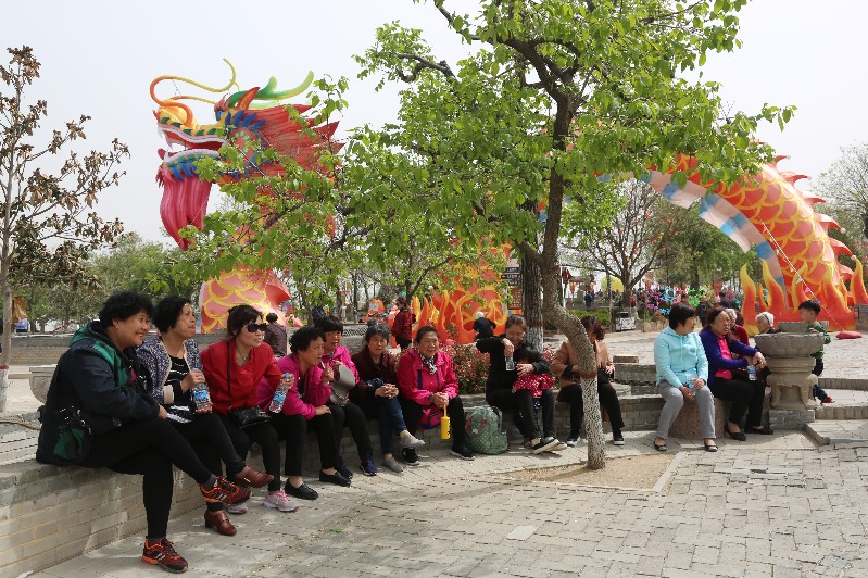 4月10日上午,22辆旅游大巴像一条长龙浩浩荡荡驶向陕州地坑院景区,近千人的火车专列游客涌入景区,景区内人头攒动,现场热闹非凡。