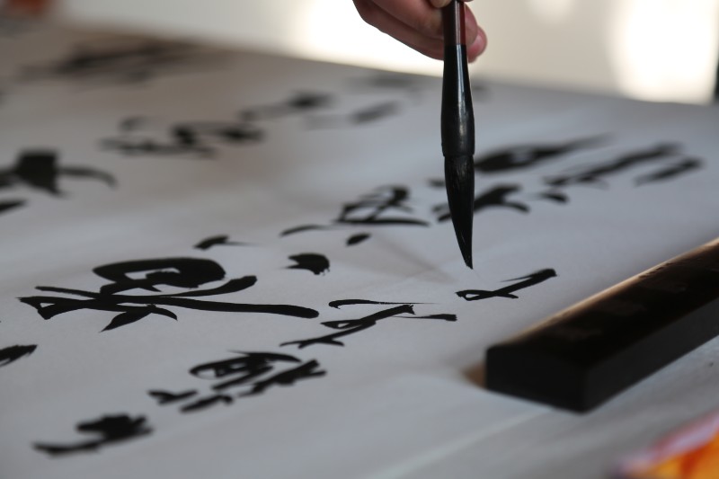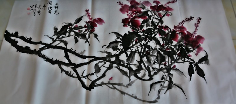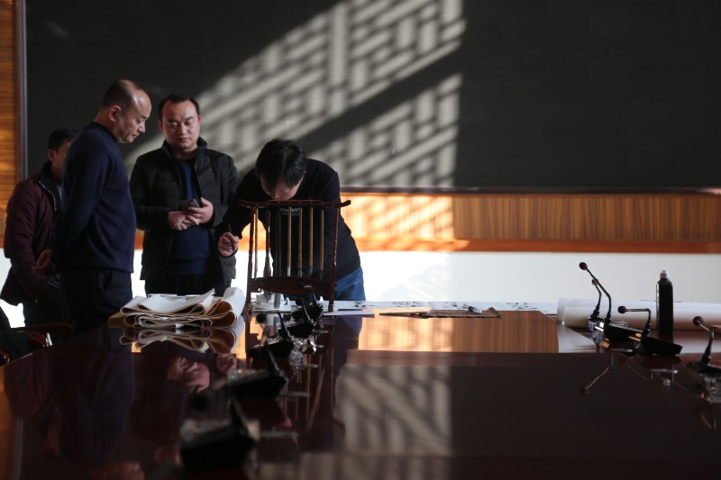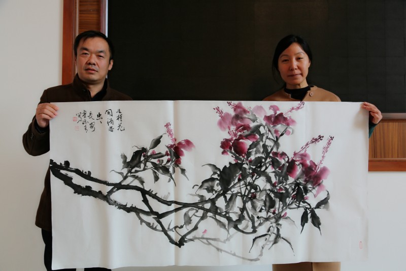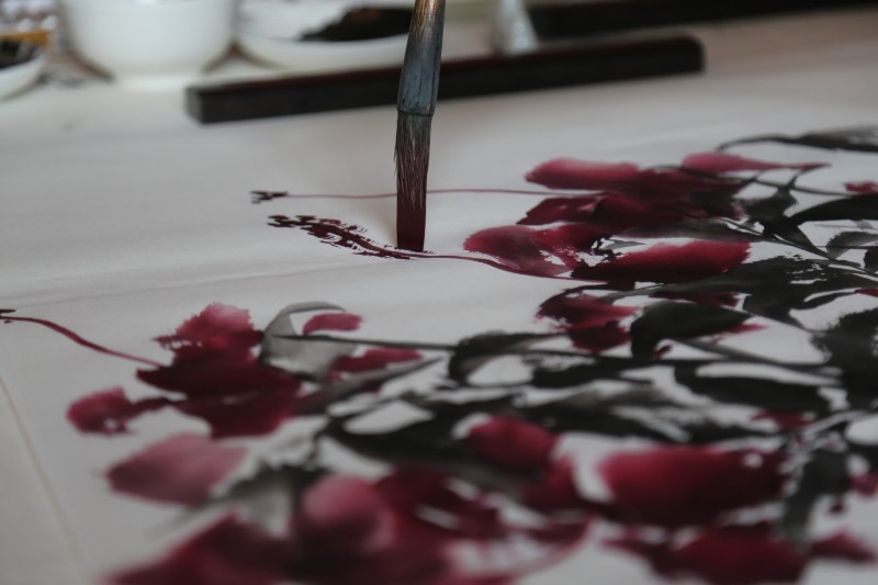 参观完后,书画家们已经按捺不住心中的灵感,拿出文墨宝贝开始了创作。书者篆隶行草、画者山水花鸟,大家在一排排画案前挥毫泼墨……