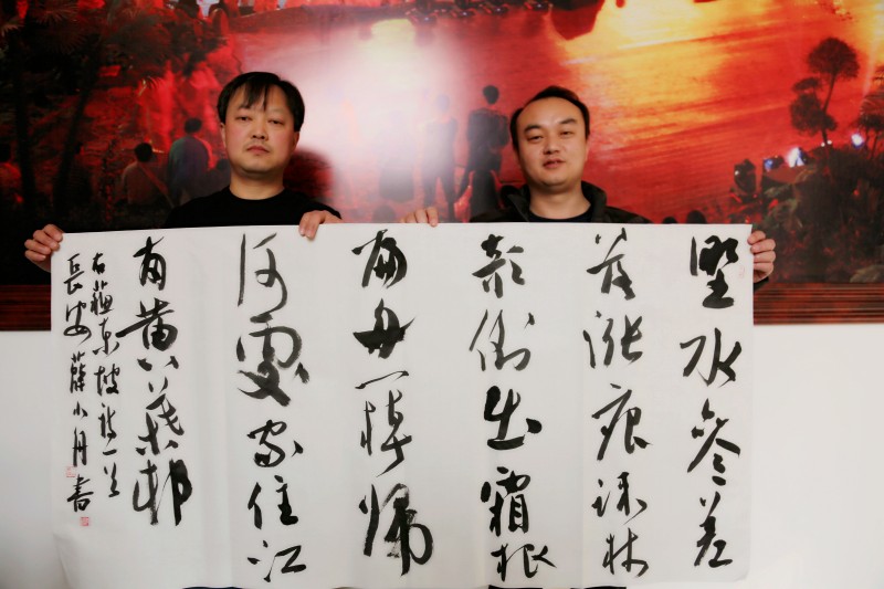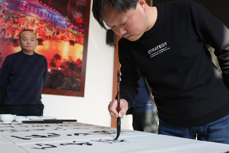 笔会结束时,大家仍然沉醉于翰墨之中,意犹未尽,有的书画家仍在继续挥毫。部分作者与作品合影留念。