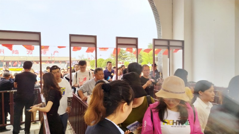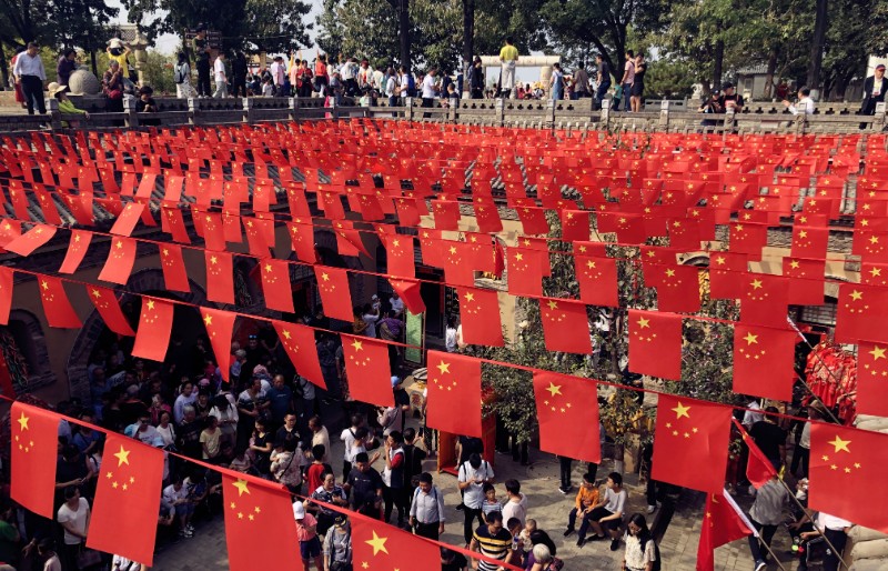 景区内随处可见游客自豪地手持红旗,笑容满面,一起欢度国庆佳节。